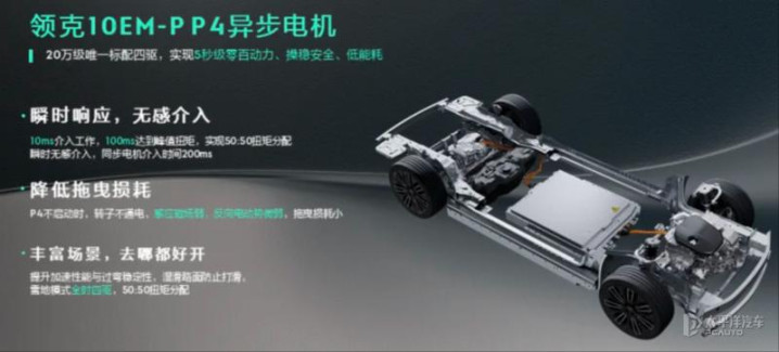 因此,领克10 EM-P相当于配备了5个动力源(P1、P3、发动机、后轮P4双电机),且动力源之间互为“备份”,让动力更强劲、不断档、驾驶更安全。而动态扭矩分配方案可通过AI大模型,自动识别车外环境、轮胎滑移率、车身姿态和用户意图等,动态分配四轮扭矩,让车辆在山路、雪地等危险场景下行驶更安全。